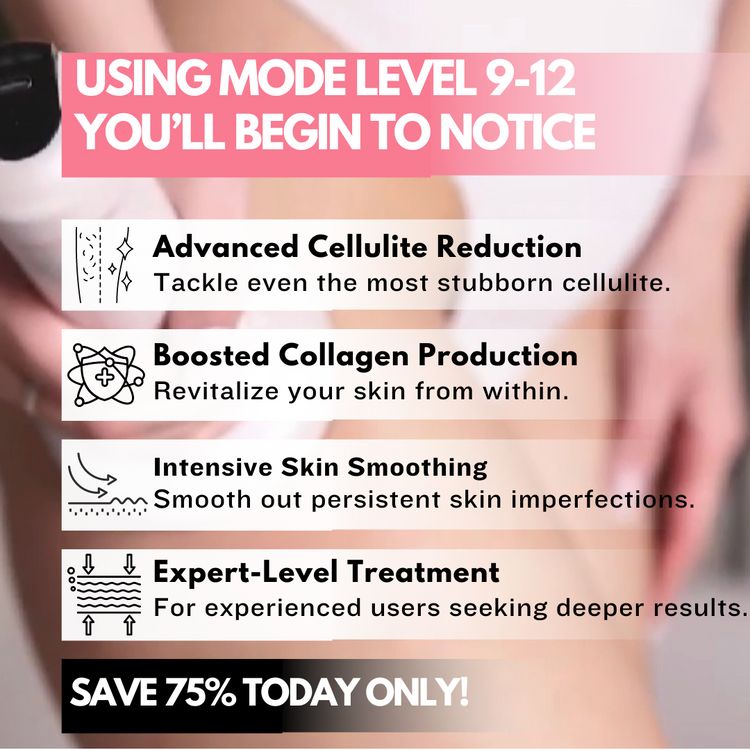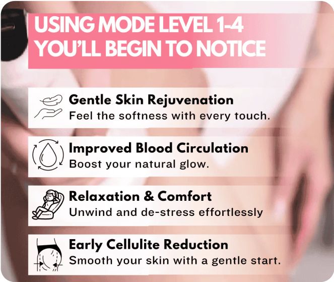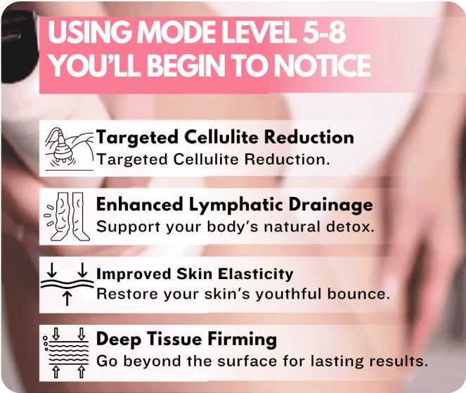 These settings help boost circulation, improve skin texture, and target visible cellulite, while still maintaining a comfortable and controlled experience.